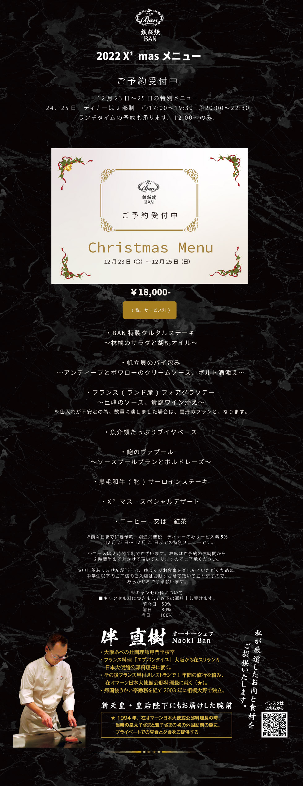今年もクリスマスのスペシャルコースをご用意いたしました。